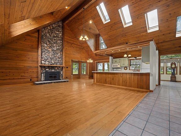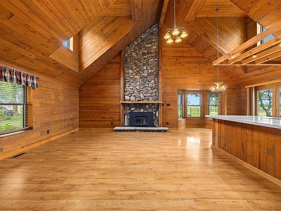 Agent owned: Midwest country living with touches of the wild west! Open concept, Rocky Mountain type log home, located 2 1/2 miles from city limits. Enjoy the beauty of the great outdoors from the comfort of your multi-level deck, offering stunning views and ample space for entertaining guests. Need space for your furry friends? The 30’X 45” outbuilding features 2 Priefert stalls adjacent to fenced pastures, easily convertible to a 3-car garage with workshop, if desired. This home also offers practicality alongside its charm. Updates include: main floor fireplace insert and flue liner 2006, roof 2012 and partial rubber roof 2016, well pump 2014, exterior sump pump 2017, A/C 2020, Furnace 2022, W/H, septic clean out/inspection, renovation of bay. Current office has much potential for non-conforming 4th Bedroom, another bath, laundry room. Don’t miss your chance to experience the best of country living –schedule a showing today and make the delightful home yours! Additional Rooms: Sun Room