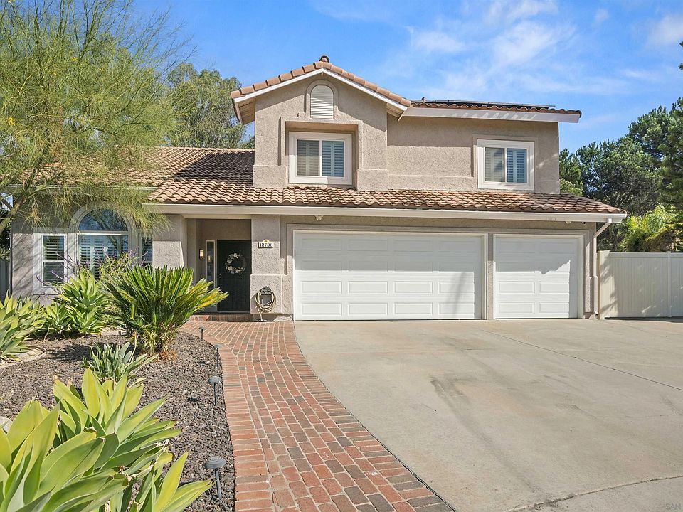 Step into this stunning home in sought-after Rancho Arbolitos! Featuring a desirable floor plan that includes a convenient bedroom & remodeled bath on the main floor & a spacious bonus room upstairs, this residence is nestled at the end of a peaceful cul-de-sac. Inside, you'll find vaulted ceilings, dual-pane vinyl windows, two fireplaces, recessed and pendant lights, & designer paint. The kitchen features beautiful views, granite counters, and a large pantry. The primary bedroom offers vaulted ceilings & a walk-in closet w/organizer, and your spa bath features an oversized tub. Plus you'll love the extra hallway storage, designer fixtures, ceiling fans, and plantation shutters in all upstairs bedrooms. The expansive & private backyard is perfect for entertaining, complete with a covered patio w/fan, a built-in BBQ, a play structure, & RV parking. Spectacular exterior features include: a motorized gate, owned solar panels, & a spacious workshop that is fully permitted space w/a 15-foot peak height, two 10-foot roll-up doors, & a separate electrical subpanel w/interior outlets every six feet. Equipped with ceiling fans, LED lighting, floor drainage, & peak ventilation, the thick slab supports an automotive lift or heavy equipment. Ideal for storing six cars, it could also be a hobby garage, workshop, game room, home office, or teen hangout. Plus, there is room for up to nine more cars in the front garage and the front & side driveways. Located near renowned Poway Schools, this exceptional property is a true gem! Come see before it's gone!