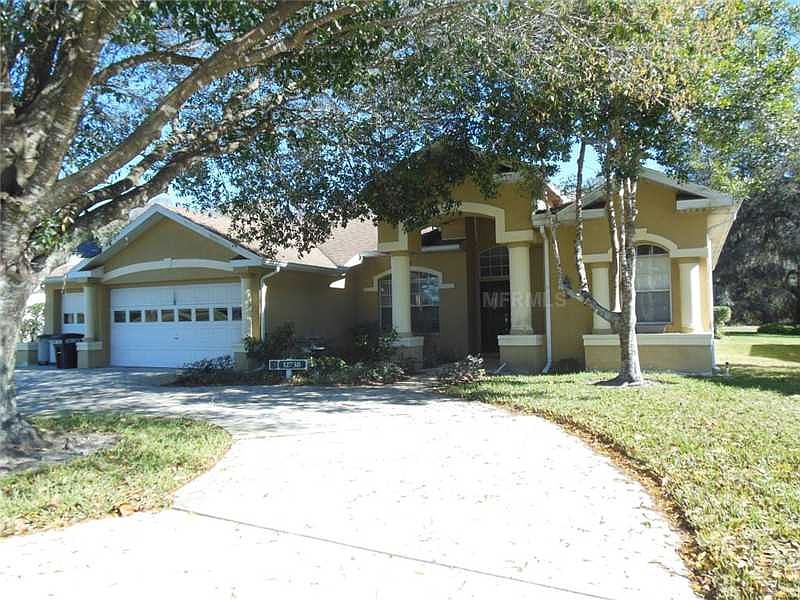 4/3/3 POOL HOME with 2,130 square feet of living space features, open floor plan, formal living and dining room, breakfast nook and family room with fireplace. Spacious kitchen offers ample cabinets and counter-space, breakfast bar, stainless steel appliances, walk-in pantry, and desk area. Laminate floors in kitchen. Family room, breakfast nook, dining room and master bedroom have glass sliders to large pool area with screened lanai. Nice size master bedroom, have his & her walk-in closets. Master bath has dual sinks, separate tub, walk-in shower. Nice three way bedroom plan. Fourth bedroom with its own bath,is also pool bath. 10' volume ceilings, A/C is about 6 years old 12 Seer. Home was built by Windjammer ~ The Concord, floor plan. No Rear Neighbors. Not a short sale.