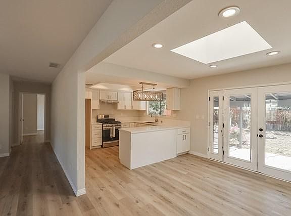 This updated 3 bedroom 2 bath ranch home is move in ready just in time for the Holidays. It has been freshly painted inside and out and exhibits new lighting, fans and gorgeous barnwood like flooring. Once you enter through the new front door you will find an open light bright atmosphere. Its finishes are white, warm grey and satin nickel throughout. You can see into the dining area with skylight and get a glimpse of the new kitchen with recessed lighting, satin nickel finishes, New Stainless Stove and Dishwasher and solid surface counters. The kitchen and dining area opens to the back yard with a covered patio. The master bedroom has built in closet shelving, new mirrored closet doors and new ceiling fan. The Master bathroom has new counters, lighting and exhaust fan. The other two bedrooms also have mirrored closet doors, new ceiling fans and built in closet shelving. The hall bathroom sits between the two bedrooms. It has a new shower, toilet, lighting, mirror and exhaust fan as well. A large two car garage is attached with direct access. The backyard is large enough for a pool and is fully fenced. Call today for an appt.