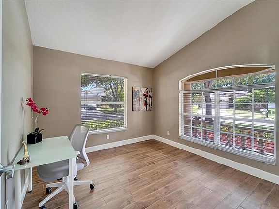 Move-in ready. Fast closing available. This 5-bedroom home with a 3-car garage is perfectly situated on a corner lot. As you enter through the beautiful foyer, you are greeted by high ceilings that enhance the spacious and elegant atmosphere of the home. The living spaces feature tall ceilings, an easy flow between the kitchen, the large formal living room, and the glass slides that open to the expansive outdoor living space. The gourmet kitchen is a chef’s delight, boasting granite countertops, stainless steel appliances, and eating nook. The adjacent inside laundry room offers cabinets, a closet, a washer, and dryer that convey with the purchase. The ideal split-floor plan has guest bedrooms on one side of the home and the primary bedroom on the other side. The primary bath with granite counter, dual sinks, and a spacious walk-in shower. The fifth bedroom is toward the front of the house, with an abundance of natural light it provides versatile space for your needs, an office/playroom/craft room. The spacious outdoor concrete patio is perfect for entertaining or simply relaxing. The fenced yard offers privacy and a secure space for outdoor activities. Recent updates include granite counters, tile floors, interior, exterior paint, landscape, hot water heater, HVAC, appliances, toilets, vinyl fence, garage doors and openers. The roof was replaced in 2017. Low HOA and CDD! Panther Trace offers fantastic amenities such as a resort-style pool, sports courts, playground, walking trails, and an on-site elementary school. Close to shopping, restaurants, medical facilities. Easy commuting to Florida's stunning beaches, to Tampa and Orlando.