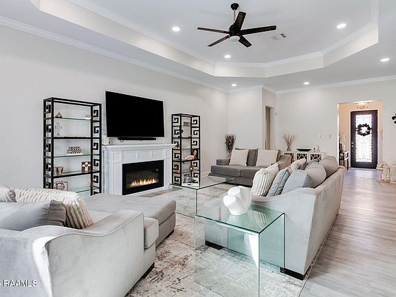 Welcome to Your Ready To Move In Dream Home in Breaux Bridge!Discover the perfect blend of country charm and city convenience in this stunning, like-new home situated on a peaceful 0.74-acre lot in the heart of the 'Crawfish Capital of the World.' Built just two years ago, this 'turnkey ready' property offers complete privacy with no HOA fees and no rear neighbors, all while being just minutes away from local shopping, dining, and entertainment.Step inside to an expansive open floor plan that is both bright and inviting. The living spaces are elevated by high tray ceilings, an airy color palette, and elegant crown molding, creating a sophisticated and functional atmosphere perfect for both quiet family time and entertaining. The spacious kitchen is a true highlight, featuring an abundance of cabinetry and counter space to handle all your culinary needs.The home's thoughtful design includes a spa-inspired main bathroom with dual vanities, a separate shower, and a tranquil soaking tuba"an ideal retreat after a long day. A large walk-in closet provides ample storage. The layout also offers a perfect balance of privacy and convenience with two bedrooms connected by a Jack-and-Jill bathroom. An oversized utility room with a sink makes laundry chores simple and efficient.