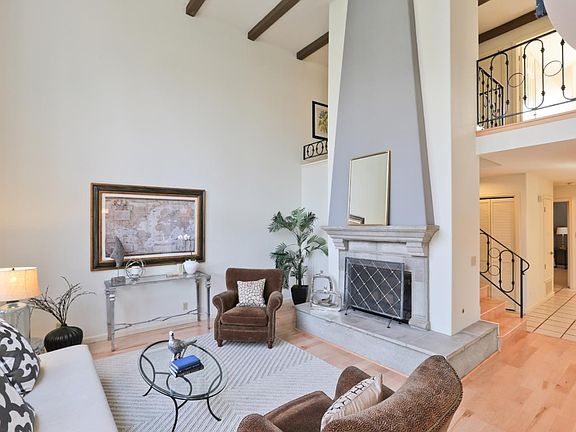 Resort style living in Desirable Cuernavaca, ground floor bedroom and full bath, Living room with two story wall of windows, fireplace, soaring 24' exposed beam celling. Formal dining. Hardwood floors. Kitchen with granite counters, travertine floors. Master suite with sunken tub, new carpet,walking closet, fireplace, Two heat and A/C units. Maintenance free rear yard.complex has pool, spa, clubhouse, gym, tennis courts, playground, greenbelt and park. Bike or walk to Mtn. View top schools: Huff and Graha