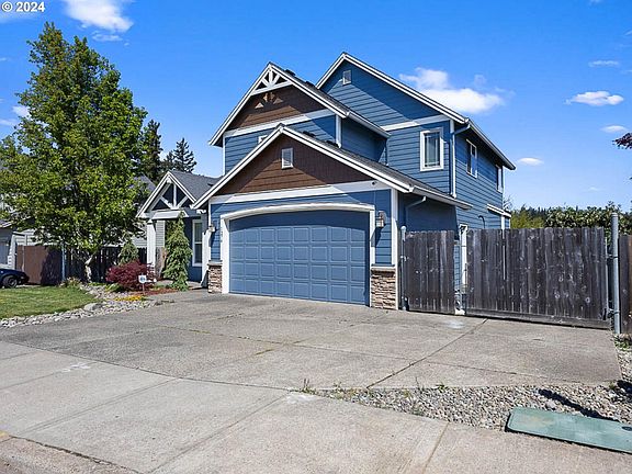 Enjoy life in the serene beauty of Estacada, Oregon. As you step inside, you're greeted by spaciousness and elegance. With 4 bedrooms and 2½ bathrooms, including a luxurious primary suite boasting double sinks, a soaking tub, and a glass door shower, this home provides ample space for the whole family to unwind and rejuvenate. Designed for both work and play, the office features double glass doors, offering privacy and tranquility for those productive days at home. The kitchen is a chef's delight, featuring a stylish island, granite countertops, a tile backsplash, a pantry, and a touchless faucet for added convenience. Entertain guests in style with the open-concept living area, complete with high ceilings, an electric fireplace, and sliding glass doors leading to the expansive 28x10 deck, partially covered to enjoy the outdoors all year long. Outdoor enthusiasts will appreciate the gated concrete RV parking, fenced backyard, covered front porch, and the covered hot tub - perfect for year-round relaxation and enjoyment. And for your furry friends, a pet door ensures they can roam freely in the secure confines of the property. Additional features include six ceiling fans, tile counters and backsplashes in the bathrooms for a touch of elegance, and recent paint updates that add to the home's fresh and inviting ambiance. Don't miss out on the opportunity to experience Pacific Northwest living!