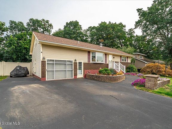 This beautifully maintained split-level home is located in the Schalmont School District. This home has many fantastic features including: a NEW roof (2023), hardwood floors underneath the carpeting, and a gas fireplace that can warm the whole home. The garage is also heated along with the basement. The basement has plenty of room to make a bonus room! The kitchen is updated and has a bay window that overlooks the backyard. The large backyard is fully enclosed with vinyl fencing. Relax in your private backyard on the patio with the built in fireplace. The rear shed is 10x16 and has electricity. There is beautiful landscaping in the front and back of the home along with a sprinkler system.