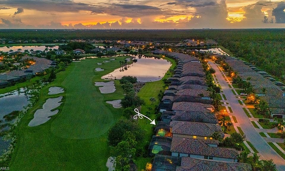 Perfectly positioned with southern exposure along the 5th hole of the Eagle Course, this residence includes a coveted SPORTS MEMBERSHIP; an exceptional value in one of Naples’ most exclusive golf communities. This stunning single-family home in TwinEagles offers the perfect blend of luxury living and resort-style amenities. Featuring an open-concept floor plan with soaring ceilings, elegant finishes, and abundant natural light, the home is designed for both everyday comfort and effortless entertaining. The gourmet kitchen boasts stainless steel appliances, granite countertops, and a spacious island, seamlessly connecting to the great room and dining area. Retreat to the primary suite with spa-like bath, dual vanities, and generous walk-in closets. Additional bedrooms provide comfort and flexibility for family and guests. Plantation shutters throughout the home and high-impact glass on all windows and doors provide both elegance and peace of mind. Step outside to your expansive lanai with a sparkling pool and spa, outdoor kitchen, and serene views of the lake and golf course; perfect for enjoying Florida’s indoor/outdoor lifestyle year-round. In the prestigious TwinEagles community, residents enjoy 1,115 acres of natural beauty, two championship golf courses (Nicklaus Group & Steve Smyers designs), a new clubhouse, bocce courts, Himalayan putting green, tennis, pickleball, a resort-style pool, tiki bar, and fitness center.