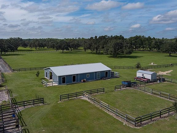 Located in the peaceful countryside of Ocala, this 20.09-acre fully fenced property offers the perfect balance of tranquility and proximity to world-class equestrian venues. Just 10 minutes from both the World Equestrian Center and HITS, this farm provides easy access to top-tier competitions while maintaining a serene, quiet setting for you and your horses. The property features a well-maintained 8-stall center-aisle barn with a sturdy wood frame construction. Designed with practicality in mind, the barn includes a barn office, bathroom, tack room, wash rack, and feeding stations, ensuring a smooth daily operation for your equine care. Additionally, a separate storage shed provides extra space for equipment, hay, or other supplies. With six established paddocks and two turnout pens, there’s ample space for turnout, training, and grazing, all surrounded by mature oak trees that offer natural shade and add to the picturesque beauty of the land. Plus, there is plenty of room for constructing an arena to further enhance the property's equestrian potential. This property offers a combination of location, quiet surroundings, and exceptional equestrian amenities!