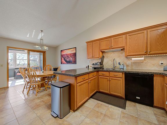 Welcome to your new SMART townhome in the sought after Rice Lake Woods development. Perfectly located close to restaurants, Lifetime Fitness, and other shopping. This END UNIT is an entertainers dream! NOT your normal 90's townhome! Gorgeous 2 bed (could convert into 3 beds), 2 bath, 2 car garage home includes large UPDATED kitchen, with more than enough cabinet space, new high-tech lighting and UPDATED appliances. New Anderson windows throughout. This townhome also has two large living areas that boast new LED lighting, a beautifully UPDATED 3 season porch, large deck and huge concrete patio underneath - it's time to entertain! Further recent updates include flooring, carpet, painting, electrical and enhanced WIFI. This is a MUST SEE!