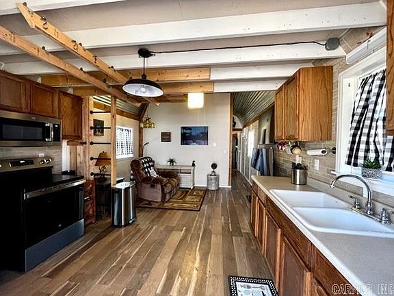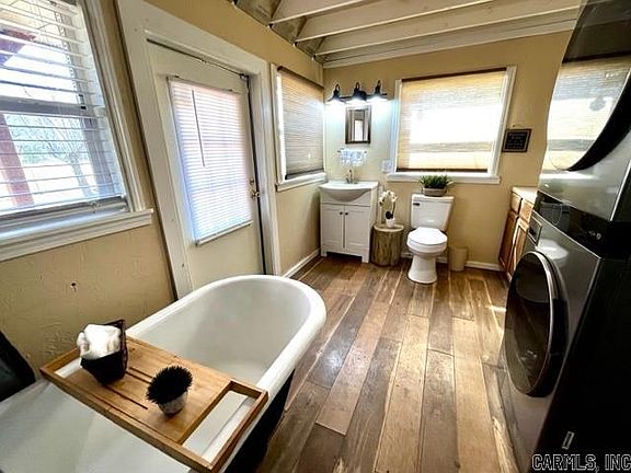 Escape to the peace and simplicity of country living with this quaint 512 sq. ft. tiny home on half an acre in the quiet countryside of Scott, AR. This move-in-ready home has been thoughtfully updated making it an ideal choice for a starter home, weekend retreat, rental investment, or a cozy space to retire. The latest owner has established a new well pump and oversized hot water heater for efficient and comfortable living. Upgrades also include updated electrical, plumbing, lighting, mirrors, toilet, restored claw-foot tub, and beautiful new stainless appliances. A GE stove, microwave, refrigerator, and LG washer and dryer have all been added to ensuring modern convenience. Two large loft areas are perfect for storage and/or additional sleep space. You’ll find a beautiful lake view just around the corner adding to the tranquility of this peaceful retreat. If you’re looking for an affordable, low-maintenance 1 bedroom, 1 bathroom home with country charm conveniently located just 15 minutes from Little Rock and North Little Rock, this is a rare opportunity you won’t want to miss. Schedule a showing today!