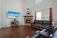 Striking stone fireplaceOpen floor planExpansive backyardElegant touchesGranite countertopsNatural lightQuiet cul-de-sac