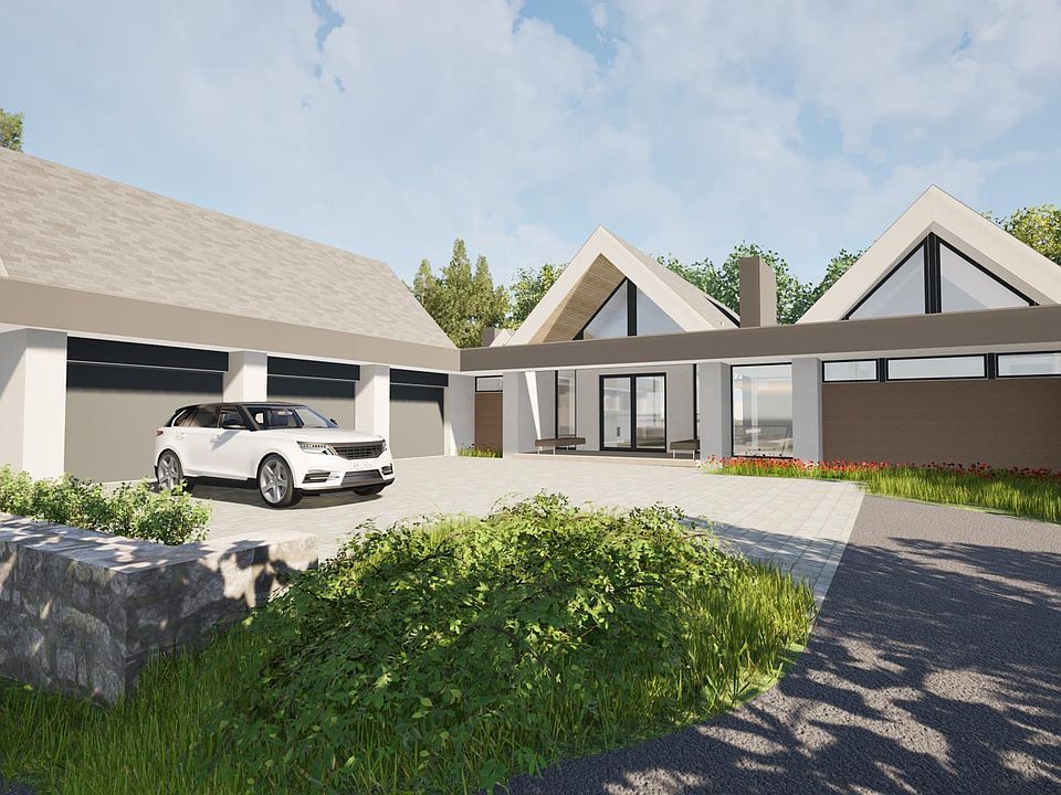 Set on a 1+ acre wooded lot, this 5-bedroom home offers just over 6,000 finished sq ft of refined living. The vaulted great room with walls of glass opens to a chef’s kitchen, walk-in pantry, and dining area designed for both everyday living and entertaining. The luxurious primary suite provides a serene retreat with spa-inspired finishes and natural light. A four-season sunroom with fireplace extends from the main living spaces, flowing effortlessly to the screen porch, south-facing patio, and in-ground pool—creating an exceptional indoor/outdoor experience perfect for afternoon sun and gatherings. The oversized three-stall garage offers abundant storage and workspace.