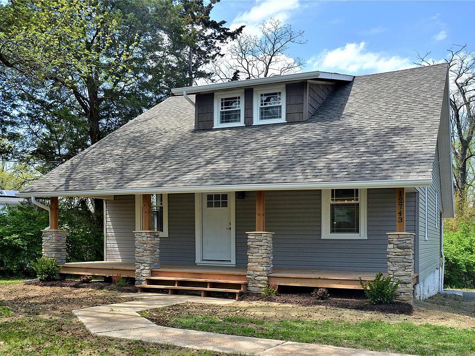 Tastefully remodeled 1.5 story in prime Sunset Hills location features 2 bedrooms, 2 full baths, and 2 levels of comfortable living space. Special features include 9 ft. ceilings, hardwood and tile flooring, charming arched doorways, 5.5" baseboards.....and a new kitchen, new baths, lighting fixtures, HVAC, plumbing, electrical panel, paint, new roof, gutters, downspouts, siding and windows. Nestled on a .63 acre lot with inviting front and rear porches, this home is conveniently located within walking distance to Laumeire Sculpture Park and minutes from shopping, dining, and access to Hwy 44 and Hwy 270.