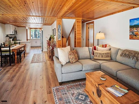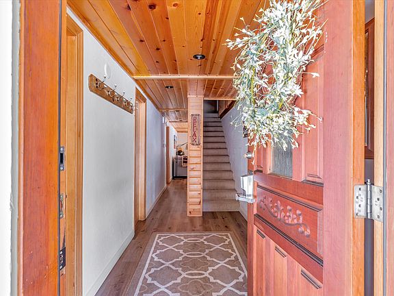 Welcome to your charming mountain retreat! Nestled on a quiet street in a picturesque, sun-drenched setting, this delightful property offers the perfect blend of tranquility and convenience. Step onto the lovely south-facing decks, where you can bask in the sunshine and enjoy the serene views of the surrounding greenbelt and forest. Privacy is paramount here, making it an ideal oasis for relaxation and outdoor gatherings. Inside, the warm and inviting interior welcomes you with an easy-living floor plan designed for comfort and functionality. The main level boasts a cozy living room, well-appointed and newly remodeled kitchen & bathrooms, walk in pantry, spacious primary suite with walk in closet, new furnace, new pellet stove and convenient laundry room—all thoughtfully arranged for effortless living. Lots of storage space throughout. Venture upstairs to discover the charming bedrooms, each exuding a quaint ambiance with their slanted ceilings, evoking the cozy charm of a classic cabin retreat. Whether you're hosting guests or seeking your own private sanctuary, the upstairs quarters offers comfort and serenity. For those with an adventurous spirit, this wonderful home also features a flat driveway and two car garage, providing ample space to store all your outdoor gear and recreational equipment. Don't miss out on this opportunity to own your slice of paradise!