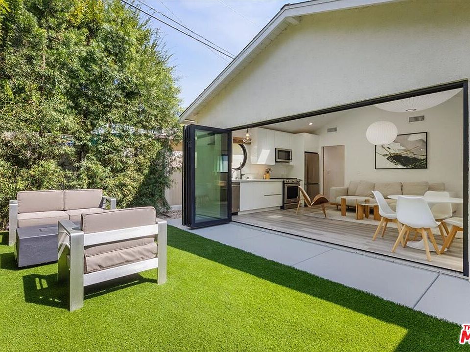 Stunning ADU, gated and furnished, 900 sq ft. 2 Bedrooms and 2 bathrooms of contemporary elegance in the heart of Studio City. Completed in 2023, this ADU features an expansive open-concept floor plan with soaring ceilings and streams of light in the living room, featuring a wall of glass Panoramic folding doors that open completely to the private artificial turf low maintenance yard, to allow for a perfect indoor/outdoor organic living and entertaining experience. At the heart of the home is a modern chef's kitchen, complete with Stainless Steel appliances - Samsung Refrigerator and KitchenAid stove, Dishwasher and microwave.Two good sized bedrooms and primary suite with en suite bathroom with large stall shower, Confetti floor and double vanity. The second bathroom has a shower over the bathtub and Langston Porcelain concrete floor finish and metro Subway wall tiles.Other features include Luxury Vinyl Plank floors, Central AC, 2 Flat Screen TV's that have automatic lift mechanisms, Stackable GE washer and Dryer, unique design porthole window, and modern fixtures and fittings and furniture, included. Located away from the main house at the back of the lot. Excellent location near Beeman Park and Erewhon Grocery Store and other stores in the popular Sportsman's Lodge. Easy access to the Westside.