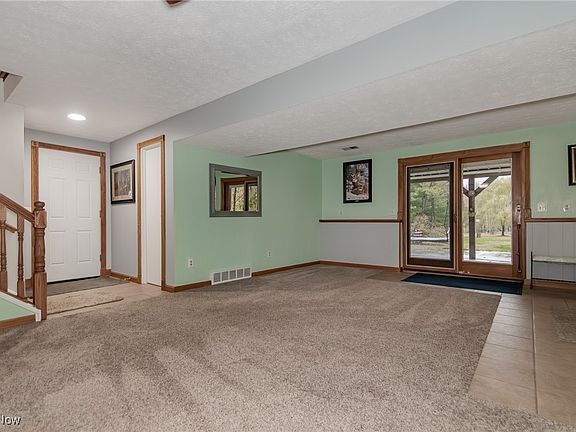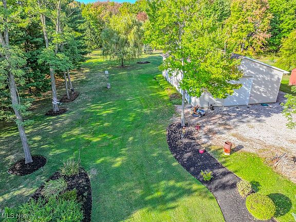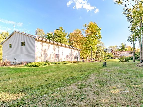 Nestled on over three picturesque acres in the heart of Leroy Township, this breathtaking property on Carter Road offers a rare blend of serenity, functionality, and sophistication. Set well off the road for ultimate privacy, the residence and its remarkable 2,400-square-foot outbuilding together provide more than 5,000 square feet of versatile living and work space. The impressive outbuilding—complete with heat, water, electric, drains, and an air compressor—features soaring high ceilings with recessed lighting, a car lift, an office/bar area for entertaining, and a walk-up loft ideal for additional storage or creative use. Perfect for a home-based business, hobbyist, or car enthusiast, the possibilities here are truly endless. The property is complemented by a newer asphalt driveway that gracefully circles from the main home to the outbuilding, framed by manicured landscaping and an open, park-like yard surrounded by a wooded backdrop. Outdoor enjoyment abounds with an Oak Ridge hunting blind, built-in grill area, picnic table, and exterior drainage system for year-round convenience. The inviting 1,800+ square foot home welcomes you through a ceramic tile foyer leading to a bright living room adorned with Pella picture windows and a vaulted dining area that opens to a two-tiered deck overlooking the tranquil landscape. The updated kitchen features KraftMaid maple cabinetry, ceramic backsplash, a breakfast bar, and included appliances. Four spacious bedrooms and two full baths complete the main level, while the lower level offers a walkout family room with a brick wood-burning fireplace, a third full bath, laundry/utility room, and access to an attached two-car garage with new flooring and a center drain. Designed for comfort, recreation, and practicality, this stunning retreat harmoniously blends rural beauty with modern convenience—a property that must truly be seen to be appreciated.
