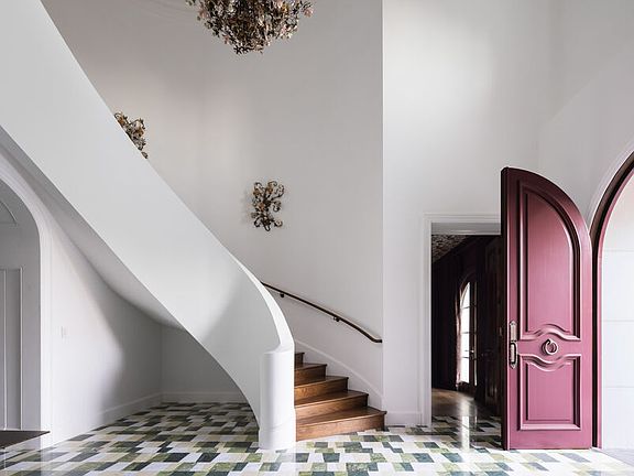 Behind the gates of a private cobblestone motor court in the heart of Brentwood Park stands The House of Hanover. Timeless European architecture reimagined through a contemporary lens this is the result of a three-year collaboration between AY Architects, Rattigan Construction, and Coppel Design. Spanning nearly 12,000 square feet entirely above grade, the residence reflects uncompromising craftsmanship at every turn. Dramatic ceiling heights and voluminous interiors unfold through a sequence of elegant spaces framed by arched passages, wide-plank wood floors, and black steel windows and doors accented with Nanz New York hardware. The Italian chef's kitchen crafted by Officine Gullo Firenze is a statement in precision and beauty, showcasing hand-finished stainless steel cabinetry, an eight-burner range, and Gaggenau dual ovens and refrigeration. Formal and informal living rooms, a pub lounge, game room, library and dining salon together create a seamless flow ideal for both grand entertaining and intimate living. Upstairs, five generous en suite bedrooms reveal an artful interplay of pattern and stone, featuring House of Hackney wall coverings and exquisite natural marbles. The primary suite is a private sanctuary with dual baths clad in Norwegian Rose marble and custom walk-in dressing rooms, each designed with couture-level detail. Beyond the main residence, the grounds evoke a private resort with a resort-sized pool with Badu swim jet, north-south tennis court and a spectacular entertainer's pavilion complete with raised-beam ceilings and a full bar overlooking the tennis court. Additional amenities include a detached professional gym, state-of-the-art theater, pool changing room with outdoor shower, full outdoor kitchen with bbq and pizza oven and a three-car garage with built-in storage. Throughout, every fixture and finish tells a story of connoisseurship: lighting by Paul Ferrante, Mechini, I Borbone and Murano chandeliers, plumbing by Sherle Wagner and THG, Crestron home automation, solar system and a backup generator for seamless comfort and effortless lifestyle. The House of Hanover represents the rarest form of Los Angeles luxury, a one-of-one estate of timeless character and contemporary grace.