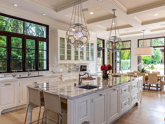 A beautiful home that checks every box, blending contemporary and timeless design. Where gracious public spaces and elegant private quarters are perfectly harmonious. Open, airy rooms with very high ceilings lead to several entertainment terraces, a perfect transition to indoor-outdoor living. A bar/lounge and media room add to the inviting informality. A dazzling kitchen is a busy family's central hub or the hot spot of a casual dinner party. One is unprepared for the soothing beauty of the master suite, a romantic retreat with fireplace and two luxurious spa-like baths. Four additional guest suites up. Room for everyone to have their own private space. Amazing grounds offer a full range of activities. Long swimmer's pool, lighted tennis court, large pool house with outdoor fireplace, a superb outdoor kitchen to serve alfresco dining areas and the most exquisite guest house you will ever see. A forever home made for life's special moments on an amazing private lot in Brentwood Park.