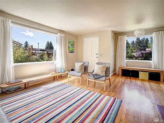 Light-filled Broadview home updated w/ an architectural eye. Large contemporary European kitchen w concrete counter topped island, butcher blk counters & SS appliances. This gem boasts hardwoods, updated bathrooms, wood burning fireplace & ample storage. 95% efficient furnace & fully insulated. Detached 240sf studio space w/ power, H2O & aux storage, overlooking landscaped yard. All this in a sought-after original Lovell located just minutes from Carkeek Park and easy access to I-5!