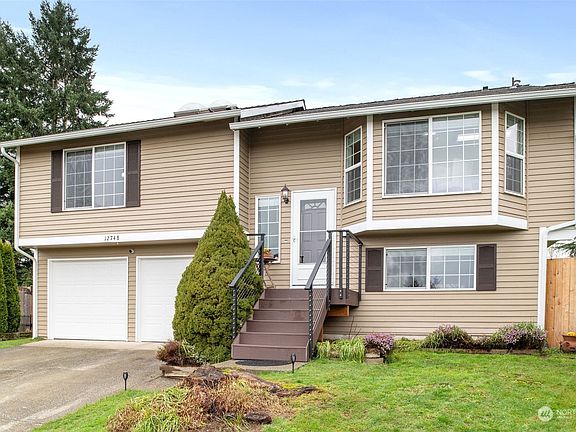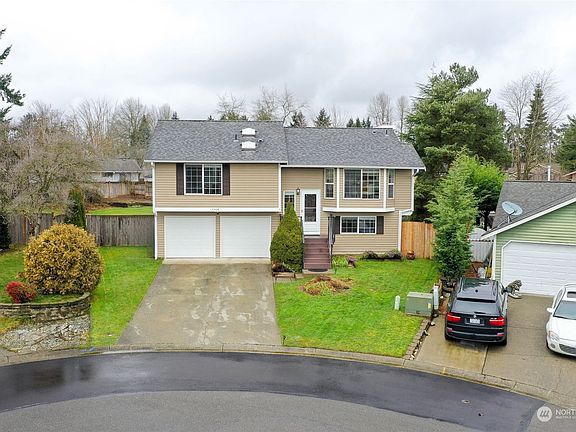 Welcome to this NW Contemporary 2-Story Hm on .24 acres situated in a cul-de-sac w/in the desirable area of Sun Meadows Community in Kent! You will feel right at hm in this well maintained 3 bdrm 2.5 bthrm w/skylights, newer furnace, central a/c & grge drs, newly painted inside, Level 2 EV charger in grge & sizeable media/wrkout rm. Cozy up to the gas frplace in the living rm w/French drs opening out onto an expansive new Trex deck for the ultimate entertaining, summertime bbq’s & private hot tub below. Fully fenced bckyrd great for gardens, dog run & fire pit. Gorgeous Mt. views from Primary bdrm & enjoy coffee watching the sunrise at the ktchn table. Great location to parks, Hwy 18 & 167, commuting & shopping making this your perfect hm!