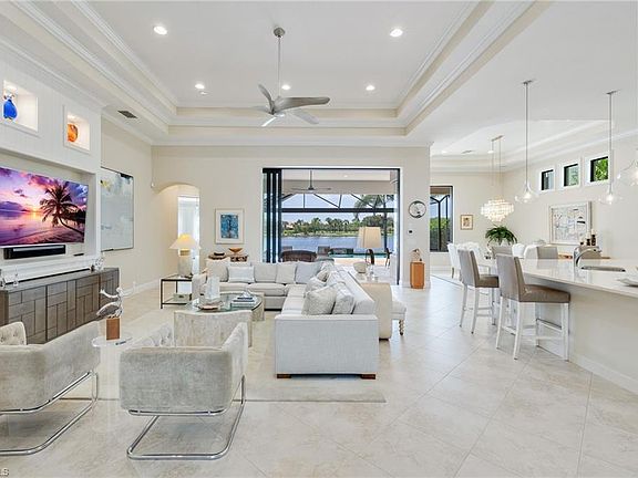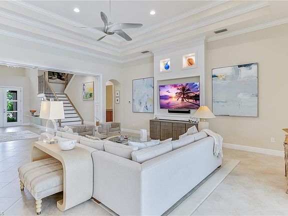 Experience the Best of TwinEagles Living. Discover a rare opportunity to enjoy wildlife, world- class amenities, and immediate access to golf — with a deeded golf membership included. Imagine playing on the very day of closing on one of two championship 18-hole golf courses. From the moment you enter the gates of TwinEagles, you’ll feel like you’re on vacation. Spanning 1,115 acres of natural tranquility and adjacent to a large nature sanctuary, this Audubon-certified community is home to deer, wild turkeys, and abundant birdlife. With 36 holes of championship golf, shimmering lakes, and serene preserves, TwinEagles is one of Southwest Florida’s premier golf communities. This elegant 3,940 sq. ft. home blends sophistication with comfort, offering 3 bedrooms + den, a bonus room, 3 ensuite baths, and 2 powder rooms. Designed with open-concept living and effortless entertaining in mind, the home boasts expansive lake and golf course views, upscale finishes, and thoughtful upgrades throughout.The gourmet kitchen is the centerpiece, featuring an oversized peninsula island, extended custom cabinetry, casual wraparound counter seating, a wine refrigerator, and top-tier stainless steel appliances. Step outside to your private outdoor oasis—a large lanai with an outdoor kitchen, multiple seating areas, and panoramic screen views that frame breathtaking sunsets. Relax by the pool, dine al fresco, or simply unwind in the tranquil setting.The first-floor primary suite offers a true retreat with pool and lake views, custom built-in closets, and a spa- like ensuite bath. All guest suites feature upgraded baths, ensuring comfort and privacy. The den includes custom built-ins ideal for separate living space, a media room or home office. The spacious laundry room is more than just functional — with abundant cabinetry, counter space, and storage, it can easily double as a hobby or craft room. Upstairs, the bonus room and guest suite provide exceptional flexibility, whether for extended family, a private retreat, or additional work/play space. Step out onto the balcony and take in sweeping long lake and golf course views — a truly special vantage point to enjoy morning coffee or evening sunsets. Additional highlights include designer lighting, ceiling fans, & custom window treatments, impact glass windows / doors, an electric storm screen for shade and protection. As a TwinEagles resident, you’ll enjoy access to the recently renovated $23 million clubhouse, complete with three restaurants, a resort-style pool, state-of-the-art fitness center, Har-Tru tennis courts, pickleball, bocce, and more. At TwinEagles, it’s not just a home — it’s a lifestyle of golf, leisure, nature, and community