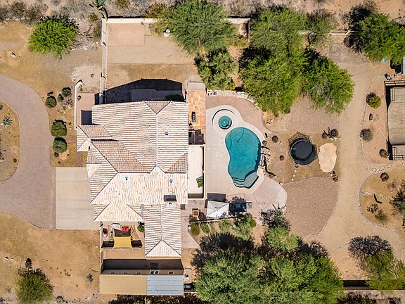 Spacious home with stunning McDowell Mountain views on 1.2 acres—no HOA! Features include wood/travertine flooring, soaring ceilings, large bedrooms, den, and chef's kitchen with stainless steel appliances and 42'' cabinets. Flexible layout with formal and casual living/dining spaces and possible in-law quarters. Resort-style backyard with pebble tech pool/spa, waterfall, beehive fireplace, and RV gates, chicken coop, climate controlled shed/office space and attached 3 car garage. This home is deal for entertaining! Just blocks from BASIS Scottsdale and top-rated schools. Rare combination of luxury, privacy, and location!