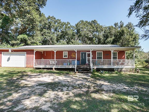 Unique opportunity to acquire a home offering both privacy and acreage in a highly desirable location. This property is ideally situated just minutes from Magnolia Springs Elementary School and the vibrant downtown area of Foley. The home features 4 bedrooms and 2 bathrooms and resides on a spacious half-acre of unzoned land, positioned at the end of a quiet cul-de-sac off Hwy 98. Adding to the appeal, the vacant parcel (PIN # 398436) will be conveyed with the sale. Enjoy relaxing on the expansive front porch, surrounded by the beauty of mature oak trees and the tranquility of nature. The property utilizes well water and has a septic tank system. This home offers a rare combination of convenient access to local amenities and a peaceful, private setting. Buyer to verify all information during due diligence.
