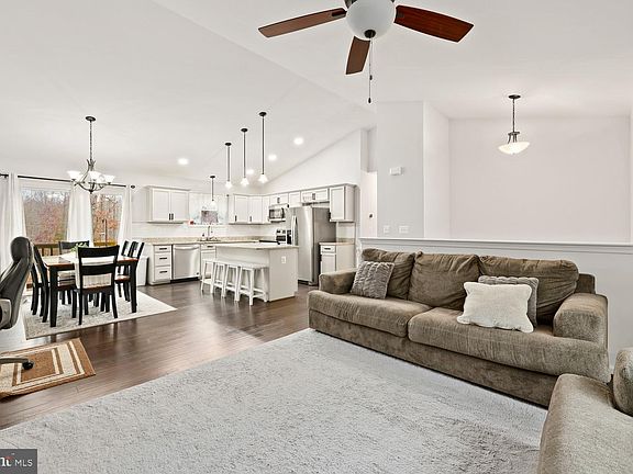 Discover this beautifully maintained 2-year-old home situated on 6.3 private acres with no HOA. A long driveway leads you to a peaceful, secluded setting. The property features newly created four-wheeler trails, a stream running through the land, and a brand-new wooden fence on one side of the property. Along with the 2 car attached garage, there is a spacious 3+ car detached carport that offers plenty of room for additional vehicles, equipment, and all your outdoor needs. Inside, enjoy an open floor plan where the living room flows seamlessly into the dining area and gorgeous kitchen—perfect for cooking and entertaining. You will love all the natural light here! The upper level includes 3 bedrooms, including the spacious primary bedroom suite, and 2 full baths. The lower level offers a 4th bedroom, 1 full bathroom, and a generous rec room, ideal for additional living space, hobbies, or guests. Enjoy the nearby battlefields, farmers market, Motts Run Reservoir, winerys, and Lake Anna State Park. No need to wait for new construction! This is a rare combination of privacy, acreage, and modern comfort—don’t miss this one!