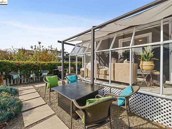 Chic North Berkeley 1 bedroom 1 bath cottage situated on a quiet drive, set back from the street. This hidden gem boasts hardwood floors, newer double-pane windows, stacked washer/dryer, and central AC. User-friendly kitchen has plentiful cabinets and adjacent formal dining room, which could double as an office. Step outside the bedroom's sliding glass doors into an inviting sunroom over the deck. Backyard is a private sanctuary: the perfect place to relax, entertain, and enjoy the luxurious hot tub. Ideal location close to 4th St. shops, Gourmet Ghetto, and UC Berkeley. Only 3 blocks to North Berkeley BART - a great alternative to a condo and a commuter's dream! Open Sat/Sun 1:30 - 4:00pm.