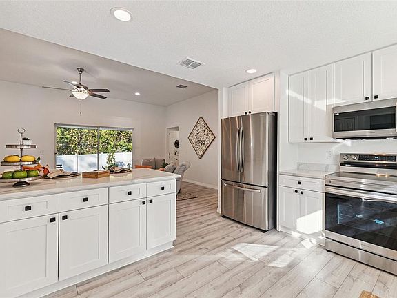 Stop the Car!! Look at this amazing NEW construction SPLIT FLOOR plan includes 3 bedrooms, 2 baths and over 1600 square feet of living space. When you enter the front door the open dining room is to the left and kitchen to the right that overlooks the family room. The amazing kitchen has upgraded WOOD white shaker cabinetry, Quartz countertops, high end and energy efficient appliances. The primary bedroom is to the left with an ensuite bathroom and HUGE walk-in closet. The primary ensuite bath includes dual vanities, walk-in shower w/niche and separated toilet. To the right off the family room are the other two bedrooms with guest bathroom and hall closet. The laundry area is INSIDE and on your way out to the 2 car garage. This beautiful home will also help you save on your monthly bills with windows that are HE/impact resistant, 16 Sheer A/C unit and all backed with a year warranty. This house HAS IT ALL!!
