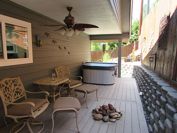 This 2 bedroom, 2 bath home is a real charmer! totally rebuilt in 2004 and still looks brand new! Pride of owner ship shows in this home. Kitchen features white cabinets with tiled granite counter tops, slide out shelves in cabinets, gas stove & a skylight for lots of natural light, master suite features a 5' Jacuzzi tub with a skylight above it. Closets have lots of storage including slide out shoe rack. Custom Tiled floors in both bathrms, top of the line laminate flooring along with carpeting. The exterior of the home is just as nice as the inside. Featuring a water feature that has Koi and Gold fish in the pond, built in gas fire pit on covered porch, witch also has 2 natural gas stubs, for your BBQ or out door heater. Fenced area so your pets will be safe. Way too many great features to list. Put this on not only your must see list, but your must have list! There is also a build-able lot adjacent that can be purchased for even more privacy.