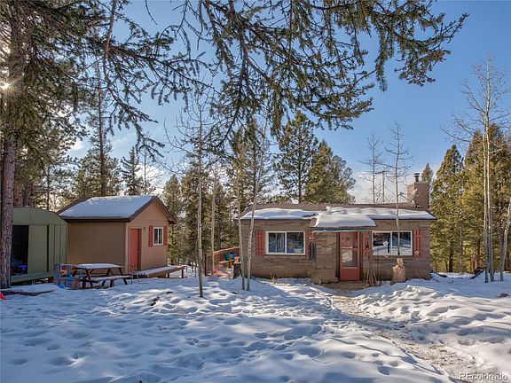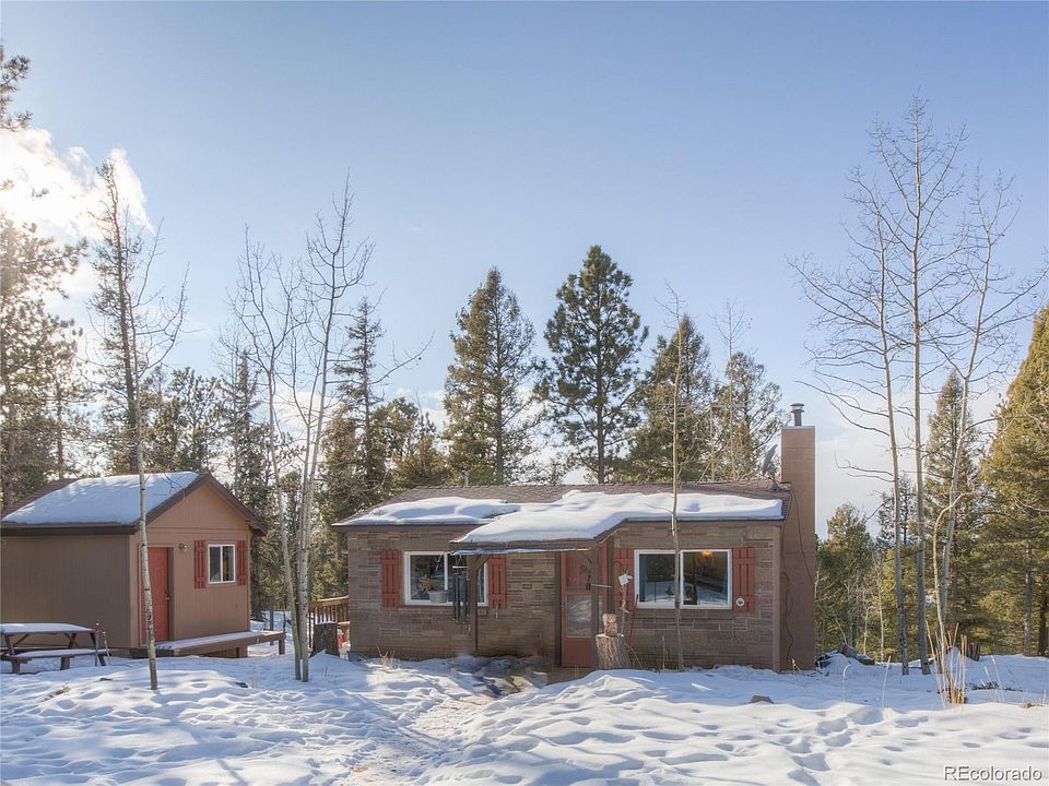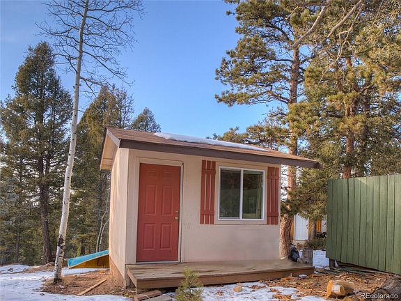 Small cabin in the woods! Peace and quiet are abundant in this little place just 15 minutes from Woodland Park and all your shopping needs. Wood stove in the living room will heat the entire space, and large, full bath includes washer and dryer. All existing kitchen appliances remain with the home as well. A tuff shed provides extra 10x10 storage space out of the weather, and a second finished shed with electrical is negotiable or will be moved. This lovely little cabin is less than 1/2 mile to national forest. Don't let this opportunity to own a mountain cabin on 1/3 acre for getaways or as potential income property!