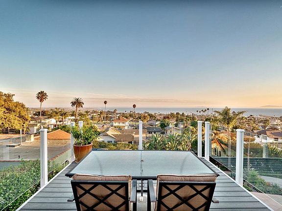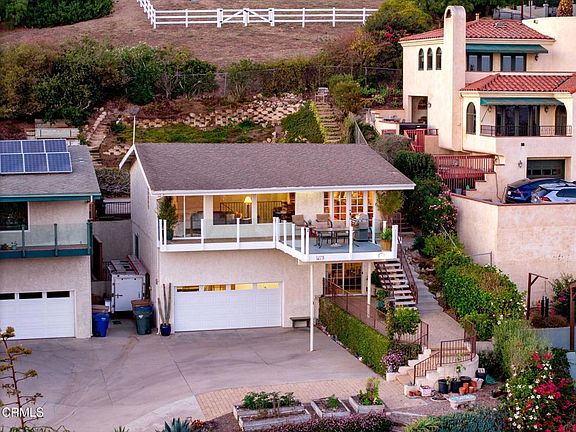 Come enjoy one of the best views in the City of Ventura! This property is uniquely situated on an expansive almost quarter acre lot, with no direct neighbor in front, allowing for unobstructed views and privacy. The design of the interior, with kitchen and primary bedroom upstairs and additional bedrooms down below, allows for the view to be capitalized on from the primary living spaces. Enjoy unobstructed 180 views of the coastline, ocean, islands, and twinkling city lights while being just a short walk from Cemetery Park, the beach and Ventura's vibrant downtown. The upper level features a light-filled living room, a remodeled kitchen and primary suite with en-suite bath. The kitchen is thoughtfully designed with granite countertops, stainless steel appliances, a walk-in pantry and a layout that lets you cook while taking in the breathtaking scenery. The living room, with its bamboo flooring, is the perfect place to relax, watch boats drift by and soak in the sunsets. Step out onto the view deck for an even more spectacular vantage point. The primary bedroom includes a sliding glass door that fills the room with natural light and opens to a private backyard. On the lower level, two additional bedrooms and a full bath provide comfort and privacy for guests. A spacious hallway closet with shelving offers flexible use--perhaps even as a future wine cellar. The two-car garage provides ample storage and even a view while you work. The unique lot design may allow for an additional street-level garage with a unit above (buyer to verify) and there's also space on the side of the home for a boat or small trailer. The drought-tolerant landscaping, enhanced with irrigation, bursts into vibrant color each spring. Homes with this rare combination of location, privacy, and sweeping views seldom come to market. Don't miss your chance to make it yours!