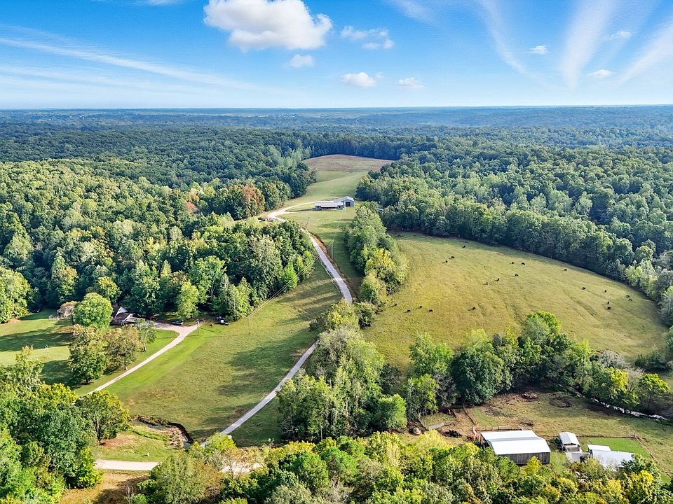 This farmhouse sits atop a hill that provides mile wide views, AMAZING SUNSETS & PRIVACY ~ 1200 sq ft GUESTHOUSE ~ 1860 sq ft DETACHED SHOP with lean-to~ 60X30 BARN with lean-to and 93 ACRES ~ bring your animals to graze the lush green pastures or get ready to see wildlife galore on this hunter dream property! The home could be the perfect place to homestead, or it could be enjoyed as a hunter's lodge paradise. Garden spots, pastures for food plots or animals, CREEK, pond for watering livestock and wildlife ~ The MAIN HOUSE features: HARDWOOD FLOORING, HARDWOOD CEILINGS, LARGE FRONT & BACK PORCHES, STAINLESS STEEL APPLIANCES, OVERSIZED KITCHEN ISLAND, SHAKER STYLE DOORS, RECESSED PANEL CABINETS, POCKET DOOR, TILE FLOORING, GRANITE COUNTERTOPS, OPEN FLOORPLAN, 4 BEDROOMS, FULL HEATED AND COOLED BASEMENT (SEMI-FINISHED), ALTERNATIVE HEAT SOURCE FOR EXTREME CONDITIONS (HEAT MASTER) 3 GARAGE SPACES ~The GUESTHOUSE features: LUXURY VINYL PLANK FLOORING, GRANITE COUNTERTOPS, COVERED PORCHES & PATIO, CARPORT with ADDITIONAL STORAGE, TILE SHOWER SURROUND, STAINLESS STEEL APPLIANCES (approximately 40+ aces pasture/70+ acres mature timber) **PROPERTY IS BEING OFFERED AS A WHOLE AND IN SEPARATE TRACTS**