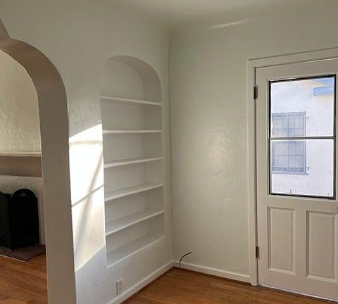 Beautiful Spanish-styled 2-bedroom 1-bathroom single-family home in Northwest Pasadena. It has a large living room with a fireplace and a large formal dining room with an inviting picture window. This comfortable home is on a tree-lined street neighborhood, within walking distance of Rose Bowl. Conveniently located close to schools, Old Town Pasadena, and shopping areas in La Canada and Montrose. Easy access to 210/134 Freeways. The home includes a lovely kitchen with quartz countertops, a porcelain tile floor, a dishwasher, a garbage disposal, a stovetop, a wall oven, and a refrigerator. The kitchen features a passthrough to a separate informal eating area. Bedrooms are large with plenty of natural light and good-sized closets. Updated bathroom with porcelain wall and floor tiles. Hardwood floors throughout all living areas. Updated Central air and heat. The laundry area is located in the garage and includes a washer, dryer, and sink. 2-car detached garage with electric opener. Large fenced-in backyard. Pets are Negotiable. Outside Smoking Only. Lease period One year Tenant responsible for Electricity, Gas, Water, Trash collection, and Gardening. Two-car garage with additional driveway parking.