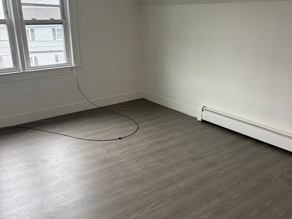Two bedrooms. living room and one bathroom on third floor of a three family house. Tenant responsible for Gas and electric. Gas baseboard heat. Needs first month and one month deposit (total $2800) to move in.