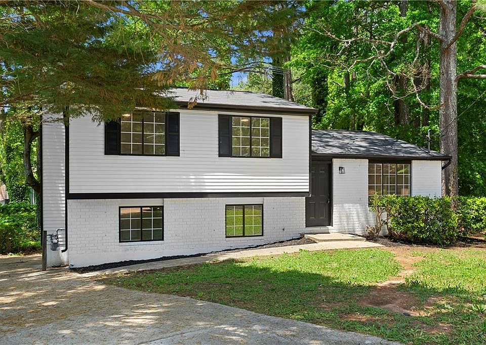 Beautifully updated Stone Mountain split-level on a quiet cul-de-sac. Come check out this newly renovated home. The open-concept living area features new wood-style flooring and a stunning kitchen with crisp white cabinetry, sleek stainless steel appliances, stone countertops, a tiled backsplash, and trendy black hardware. Upstairs, you'll find three bedrooms and two full baths. The primary suite is a private retreat with a fully renovated en-suite bathroom, complete with a luxurious stand-alone tiled shower. The additional bathrooms have also been thoughtfully updated with new vanities and modern fixtures. Downstairs, there's a large family room—easily usable as a fourth bedroom—with plenty of space and a masonry fireplace. You'll also find a utility room for extra storage and an updated half bath. Don’t forget the backyard, perfect for relaxing and entertaining.