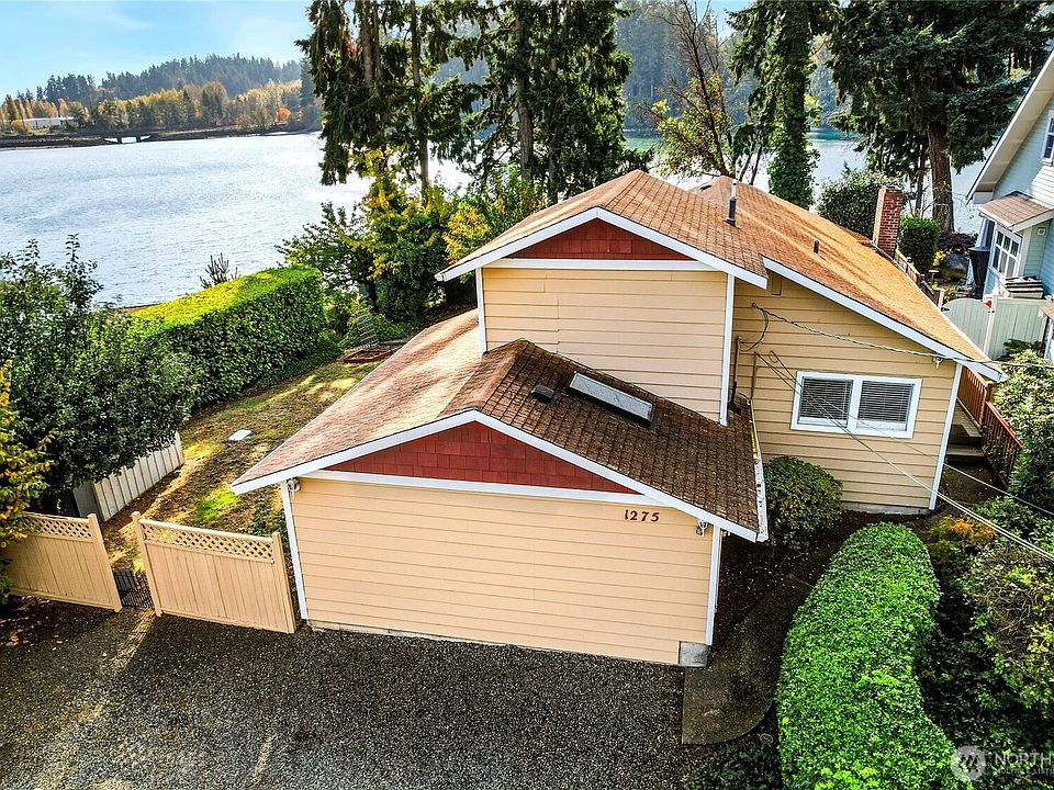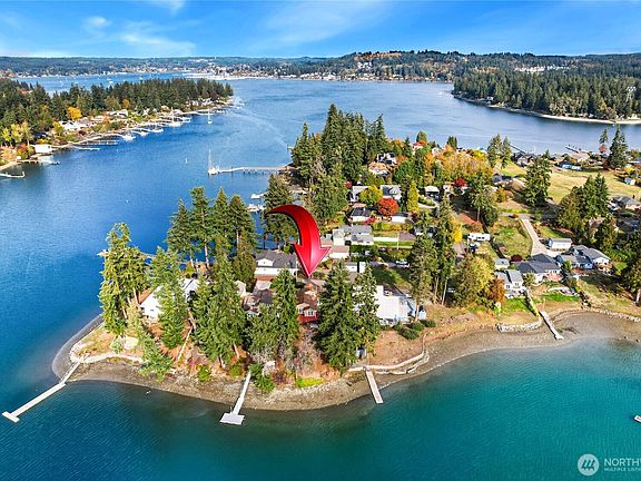 Experience affordable waterfront living in the charming village of Keyport! This tastefully updated home offers a spacious open-concept living and dining area filled with natural light from multiple French doors showcasing amazing water views. With three bedrooms—each on its own level for privacy—the primary suite features a walk-in closet, cozy fireplace, and ensuite with dual vanities, jetted tub, and separate shower. Enjoy a large deck overlooking the Puget Sound, garden space, storage shed, and private stairs to the beach. Conveniently located near shopping, amenities, ferries, and the naval base. Mortgage savings may be available for buyers of this listing.