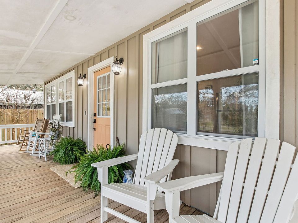 Privacy fenceLarge orange treeLarge front porchOriginal hardwood floorsSliding barn doorBeautiful lush landscape