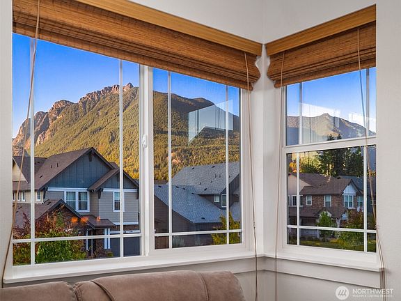 Better than new (2022 build) with premium upgrades, this North Bend home captures mountain views with a bright, open-concept layout. The custom gourmet kitchen features a large island and Belmont cabinetry, flowing into the great room. A main-level bedroom, den/office, and nearby ¾ bath provide ideal guest or flex space. Upstairs, 8-foot doors open to the primary suite with custom closets and a spa-inspired bath. Smart upgrades include motorized blinds, smart lighting, security system, and automated irrigation. Fully fenced backyard is perfect for outdoor living. Central A/C for year-round comfort. Minutes to parks, trails, downtown, and I-90 for quick access to Seattle, Bellevue, and Eastside tech hubs. Desirable Snoqualmie Valley Schools.