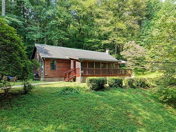 *PRIVACY* Discover peace and tranquility in this charming mountain home set on over 4 acres of beautiful, UNRESTRICTED land in the desirable Happy Valley community. Situated on a paved road and made up of six combined lots, this property offers privacy, space, and flexibility. The 3BD/2BA home features a spacious great room with a wood-burning fireplace, hardwood floors, and abundant windows that fill the space with natural light. A large kitchen island is perfect for gatherings, and the full laundry/mudroom includes a utility sink for added convenience. A metal roof and log siding enhance the rustic, mountain cabin feel. Upstairs, an unfinished attic provides excellent storage or could be finished to create additional living space. Enjoy HIGH SPEED FIBER OPTIC internet, ideal for remote work or streaming. Step onto the screened-in front porch and soak in the peaceful surroundings, or gather around the firepit for evenings with friends and family. A detached workshop/hobby room with power offers even more functionality. Take in the peek-a-boo mountain views and enjoy the beauty of several mature, flowering bushes throughout the level/gentle property. Spring and small stream on lot 20. All this just 10 minutes from downtown Hiawassee, GA and the sparkling waters of Lake Chatuge—your perfect mountain escape awaits! BUYERS HOME WARRANTY INCLUDED!