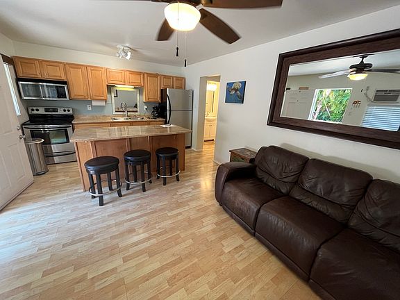 One bedroom furnished apartment located across the street from the beach and next door to the conveniences of Azeka Plaza. Rent of $2350 includes electricity, water, garbage, and Hawaii GE Tax. This apartment is fully furnished with bedroom and living room furniture and a TV. The kitchen has pots/pans, dishes, silverware, utensils etc. The bedroom and living room have ceiling fans and the bathroom and kitchen were recently remodeled. AC in living room. Walk to the gym, post office, great restaurants, pool, banks, pharmacy, and grocery store. There is a direct beach access in front of the building. This is a downstairs unit in an 8 unit apartment complex. -Available March 1st. -Sorry, No pets or smoking on the premises --no exceptions. -6 month minimum lease. -Off street parking for 1 car. -Coin-op laundry on site. -Applicant must have good credit and rental references. -Showing by appointment only. Rent includes utilities: water, garbage, and 250 kWh of electricity. Tenant is responsible for their own internet/cable. No smoking or pets, no exceptions. 6 month minimum lease that converts to month to month after 6 months.
