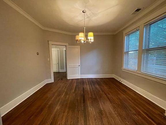 Lovely spacious duplex with thoughtful renovations. Large rooms with pretty hardwood floors, 10' ceilings, french doors, lots of windows, beautiful chandelier from the Peabody Hotel in living room - charm charm charm! Renovated kitchen with stainless steel appliances including refrigerator, stove and dishwasher, built-in butler's pantry, large pantry, updated bath with original clawfoot tub, washer/dryer connections and relaxing front porch. Located on quiet, tree-lined Midtown street. Downstairs unit. Owner takes care of yard.