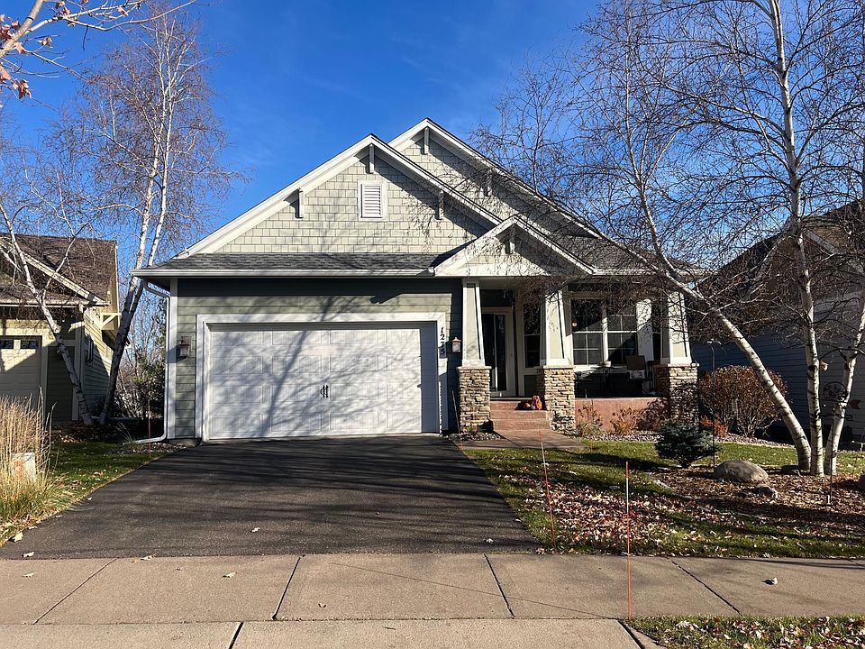 This beautifully maintained 3-bedroom, 3-bath rambler combines thoughtful updates with picturesque views and an exceptional layout designed for comfort, convenience, and entertaining. Step inside to find warm oak hardwood floors, abundant natural light from east-facing windows, and a seamless flow between living spaces. A stunning two-sided see-through fireplace connects the kitchen and living room, creating a cozy ambiance throughout the main level. The kitchen offers excellent storage, including pull-out shelves, rope and under-cabinet lighting, and newer 2023 appliances. A bright den with a bay window makes the perfect office or reading nook. Enjoy true one-level living with the primary suite, laundry, kitchen, and living areas all on the main floor. The primary bedroom features a spacious walk-in closet with built-in shelving. Just off the living room, a charming 3-season porch with a 9-ft sliding door opens to the grill deck—ideal for morning coffee or quiet evenings overlooking the pond. The walk-out lower level is designed for entertaining and relaxation, featuring a generous family room, wet bar with refrigerator, two additional bedrooms, and abundant flexible space. With zone heating (2 zones), comfort is easy to maintain year-round Outside, enjoy a peaceful backyard with a pond, low-maintenance perennial gardens, and direct access to the walking trail. 3 car tandem garage. Community with incredible amenities including a community pool and park. With its welcoming layout, modern upgrades, and serene natural setting, this home offers the perfect blend of style, flexibility, and convenience.