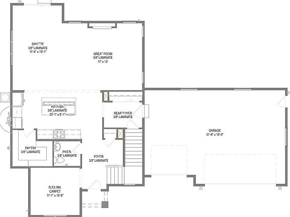 Electric fireplaceQuartz countertopsHall bathroomSpace for future finishingCozy great roomSpacious walk-in pantryExterior vented range hood