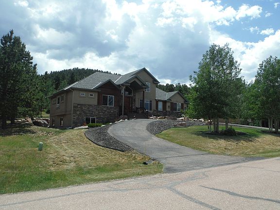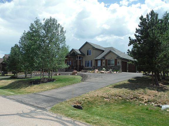 Builder custom model home. Previously in Parade of Homes and Holiday Home Tour. 4356 sq. ft. four bedroom, four bathroom, office, loft, eat in kitchen, formal dining, large basement family room, built in shelves in oversized storage room, wired in surround sound system, additional lower level laundry room. Acre lot with professional landscaping, circle driveway and sprinkler system. Oversized three car garage with built in shelves. Main level with beautiful hardwood floors. Main level master bedroom includes a 5 piece bath with jetted tub, oversized shower and large walk-in closet. Many recent additional upgrades including newly updated barn doors, beetle kill wood walls in office, authentic barn wood wall in entrance, wood staircase to lower level, knotty alder doors and trim throughout, epoxy stained lower lever floors. Wet bar on lower level. Private back yard with large Trex decking and extended cement patio, perfect for entertaining. Custom stonework on main level around arches and fire pit area. Kitchen has granite countertops, large pantry, double ovens, custom 5 burner stove, all stainless steel appliances. Large laundry with additional cabinets and wet sink off garage with easy access to kitchen. Double sided fireplace between dining and living room. 25 minute beautiful commute down Ute Mountain Pass to Colorado Springs. 30 minutes to Cripple Creek and Gold Mine. Call owner at 719-244-0337 for timely showing.