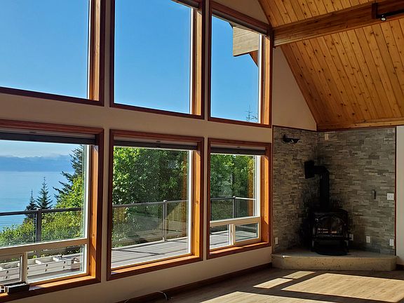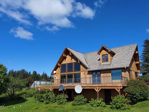 Beautiful Kachemak Bay view home featuring 3 bedrooms 3.5 baths massive family room, attached garage, natural gas, gorgeous wood ceilings and one of the biggest Master bedrooms I've seen. This is a gardener's paradise with flower gardens, berry gardens, outdoor gardens, high tunnel greenhouse featuring highly productive apple and cherry trees and beautiful lawns. This is a must-see property.