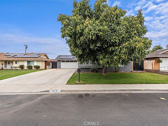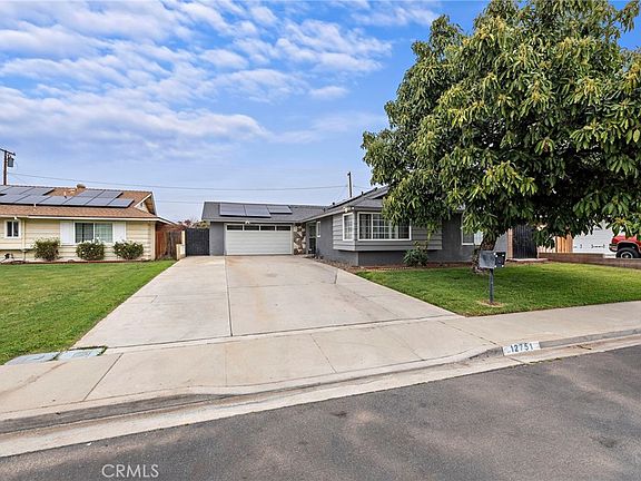 Charming single-story starter home on a serene, tree-lined street features 3 bedrooms, 2 updated bathrooms, and nearly 1500 sq. ft. of living space. Includes energy-saving solar panels, a modernized kitchen, and bathrooms, plus a new shed. Highlights: freshly painted, brick fireplace, private backyard with fruit trees, and an Avocado tree in front. Long driveway, two-car garage, and RV parking. Located on a quiet cul-de-sac, close to schools and shopping. Solar panels included in purchase price. Open kitchen to the breakfast bar & nook. Double oven, dishwasher. Lots of cabinets. Large family room with French doors out to patio. Brick fireplace for those chilly nights. New ceiling fans, new toilets.