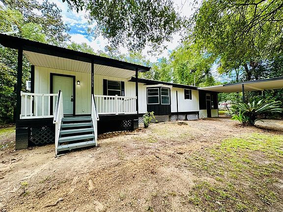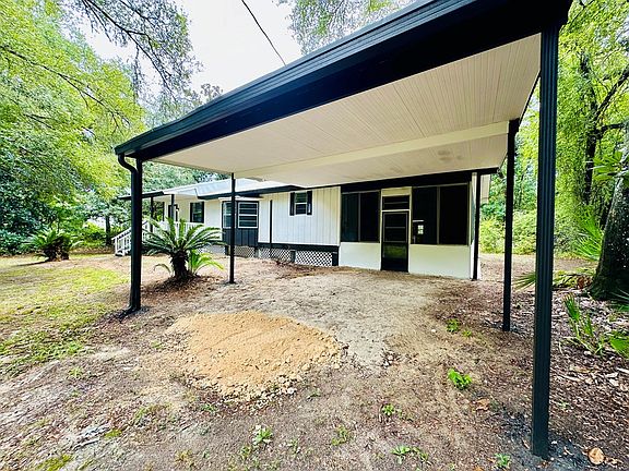 Welcome to Deere River Estates! This stunning home sits on just over an acre with no HOA. Enjoy a short walk to the public boat ramp on the famous Suwannee River, where you can take the kayaks or boat out, or swim along the riverbanks. A quick drive takes you to Manatee Springs, featuring crystal clear 72-degree water year-round, walking trails, and a scenic boardwalk to the river. This property is in a low-risk flood zone X per SRWM mapping, ensuring peace of mind. Enter the house from the covered front porch into the living room or through the attached carport, which leads to a large enclosed patio, keeping you dry in any weather. The laundry room is conveniently located off the enclosed patio. Entering into the home from the enclosed patio leads into a small entryway by the kitchen. The house features new interior and exterior paint, new floors, and is fully renovated and move- in ready! Open living and dining room with bay windows that overlook the front yard, perfect for watching wildlife. The master bedroom includes a walk-in closet and private bathroom, while the second bedroom boasts plenty of natural light overlooking the backyard. The backyard offers a shed for storage and a small open barn. As you leave the grassed backyard into the back of the property, you'll step into a tranquil wooded area filled with large live oaks, magnolia trees, and natural landscaping. Nature awaits at this beautiful home! Call to schedule to see it in person today!