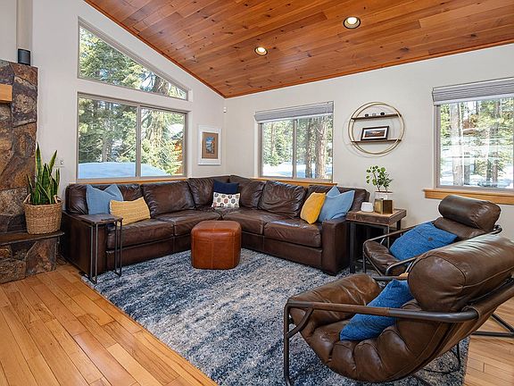 This exquisite property is a stunning display of pride of ownership. This immaculate mountain retreat will leave you in awe. Upon entering through the air-lock entry, you will be greeted by a breathtaking great room featuring a custom wood burning fireplace, soaring vaulted ceilings, exquisite hardwood flooring, designer lighting, and elegant window coverings. The completely remodeled kitchen is a chef's dream, boasting high-end appliances, a pantry, natural quartzite counters, a center island, and a spacious bar area. The master suite is a luxurious haven, offering two large closets and a private bath with a BainUltra jetted tub, a country club shower, and double sinks. The main level also includes two guest rooms and a guest bath. Downstairs, you will find a family room, a guest room, a guest bathroom, and a mudroom conveniently located near the garage entrance. The oversized garage features a wall of built-in shelving and a corner workbench, providing ample storage throughout. The stunning exterior of this property boasts one front and two back decks, perfect for entertaining throughout all seasons. The backyard is a true oasis, featuring a tiered stone patio, tasteful landscaping, and a lush lawn with a sprinkler system. This exceptional property is located in a highly sought-after full-time neighborhood in a prime location, close to Downtown Truckee, the middle school, the recreation center, and Prosser Lake. Rainbow Drive is plowed regularly by the town for easy winter access. This property is just minutes away from world-class skiing, Lake Tahoe, and endless recreational opportunities.
