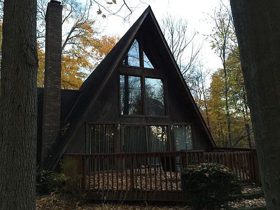Winter, fall or summer you will always feel close to nature! This A-Frame sits on 3.5 acres of woods, with a scenic little ravine and a stream out the back door. Enjoy your wood-burning fireplace while watching snow flakes out your front windows or spring birds enjoying your treed lot. Out back enjoy paths to creek and deck with gazebo area. 2+ car garage. In-law suite that has bathroom, heat and electric. Inside the home enjoy the spiral staircase to loft area! This is a must see to appreciate just how beautiful it is!